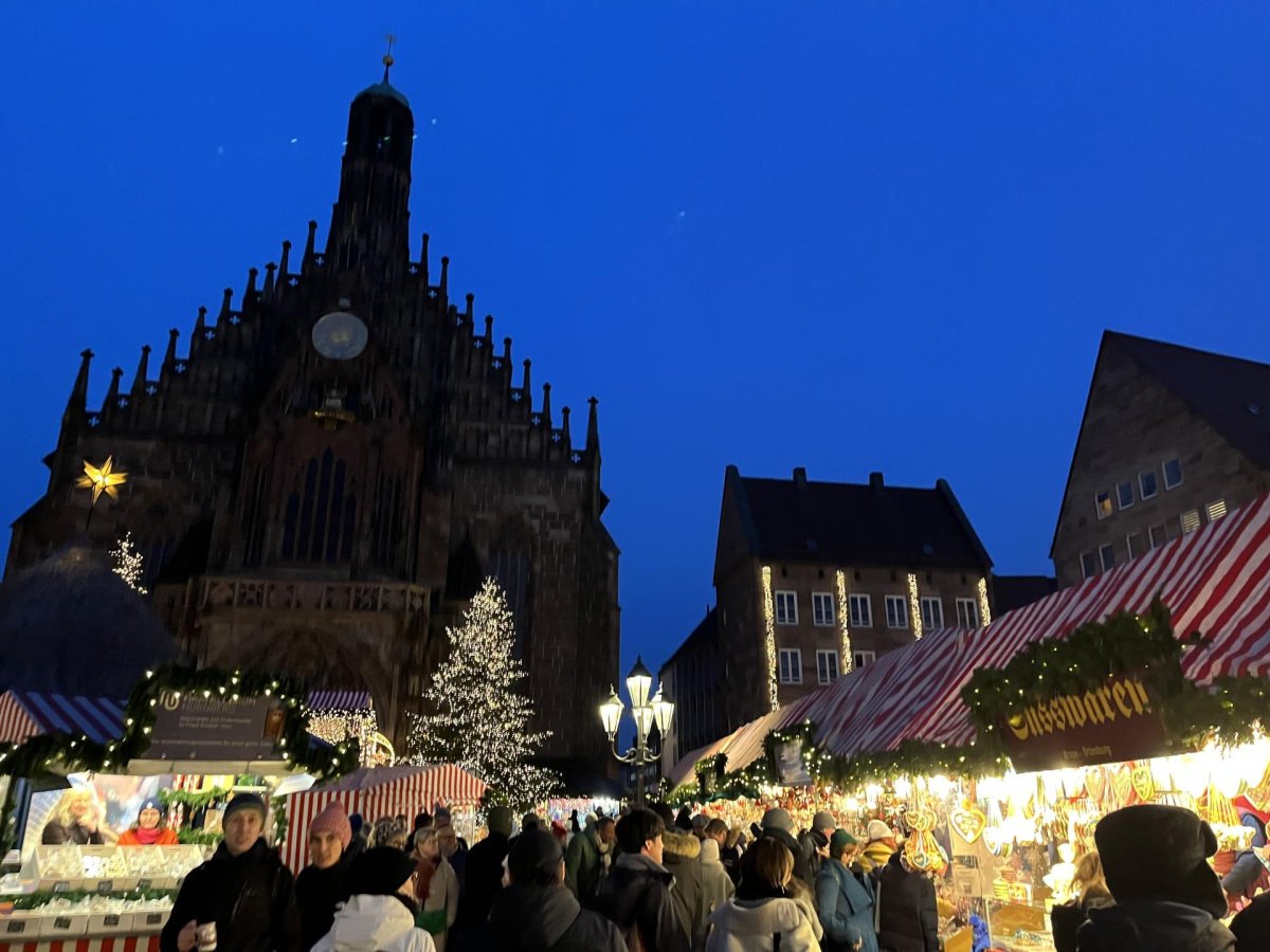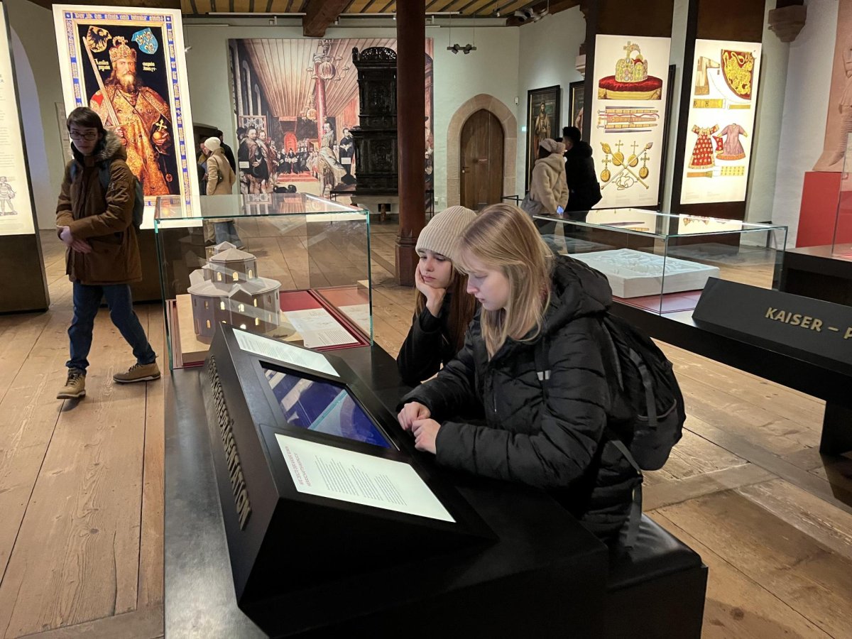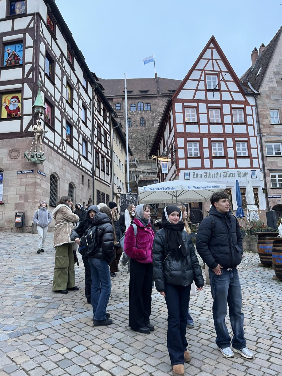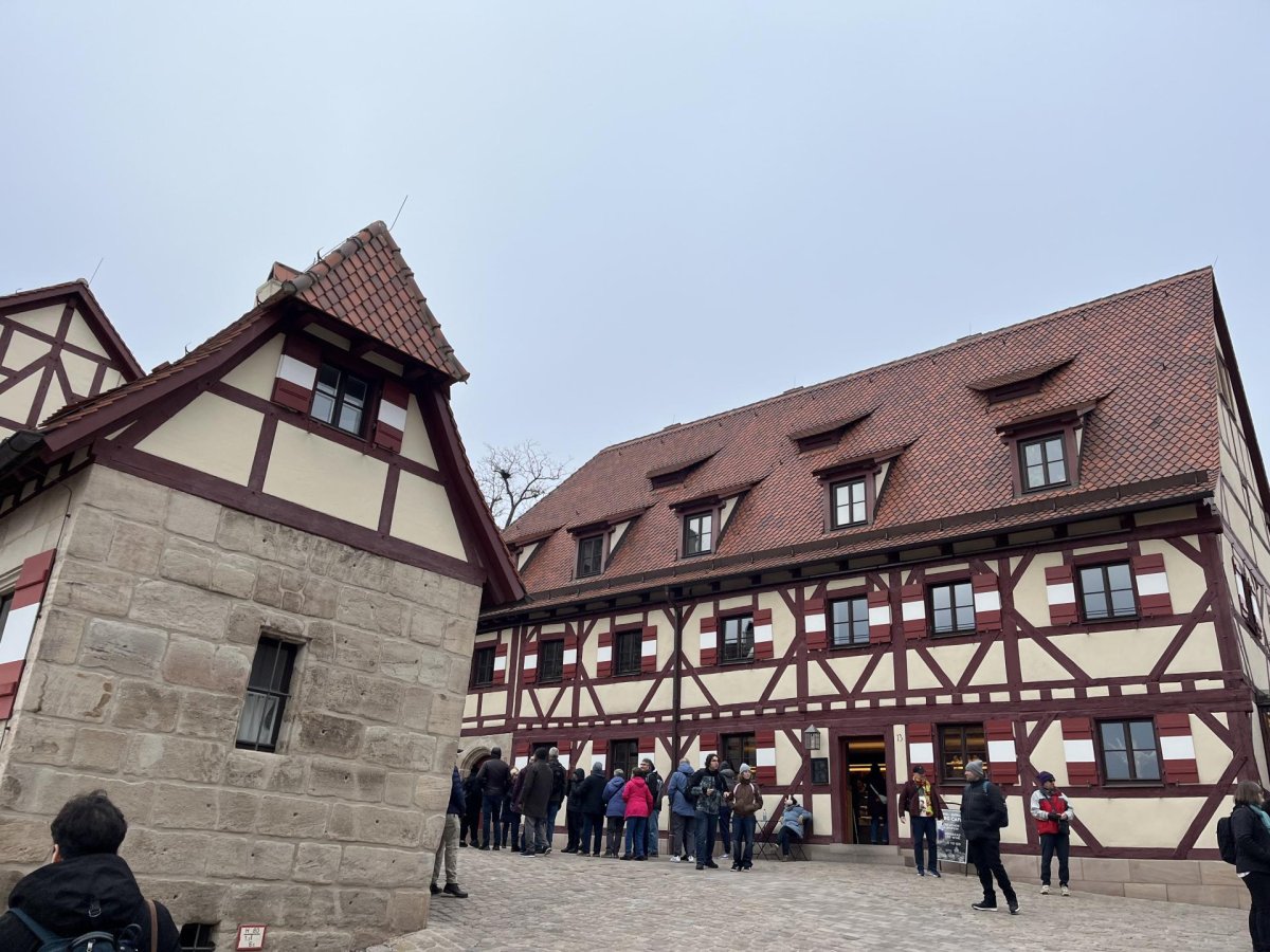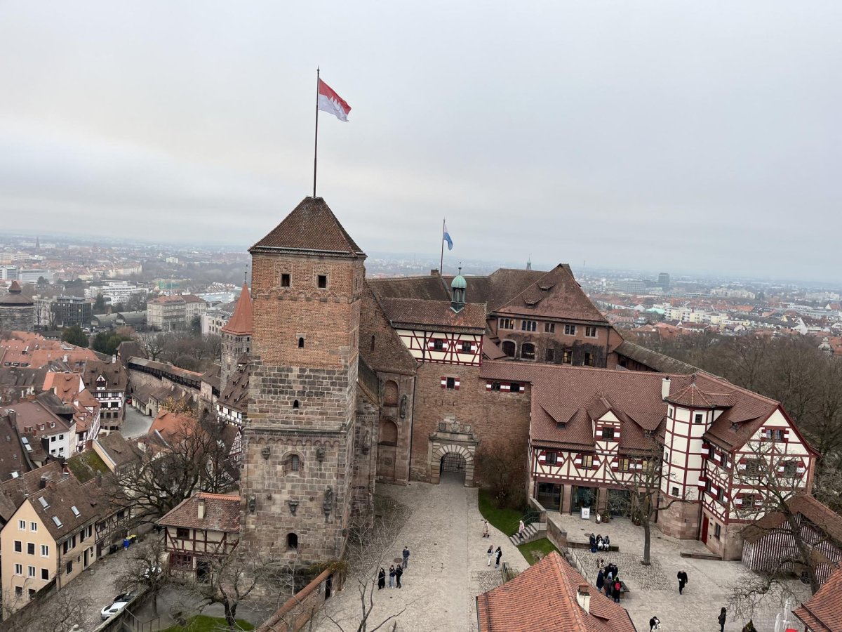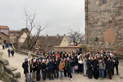 V pondělí 15. 12. jsme absolvovali jazykovo-historickou exkurzi do německého Norimberku. Zažili jsme neskutečně plný den: dopoledne jsme navštívili Dokumentační centrum při nacistickém Kongresovém centru (Kongreshalle) a obešli pozůstatky areálu sjezdů NSDAP. Odpoledne jsme prozkoumali Císařský palác a Staré město a samozřejmě nemohli minout minout vánoční trhy Christkindlesmarkt.