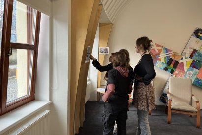Students studied and discussed famous masterpieces in our temporary chapelgalery.